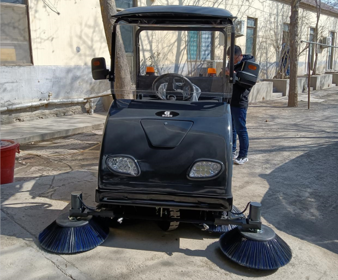 這次貴司選購的這款是駕駛掃地機是清掃寬度1.8米的,可以帶遮陽棚和前擋風(fēng)樹脂玻璃,加大功率也是后驅(qū)動的,垃圾箱150L,水箱70L,48v免維護電瓶?;究梢詽M足他們道路的需求,針對一些灰塵石子落葉,一掃而光。