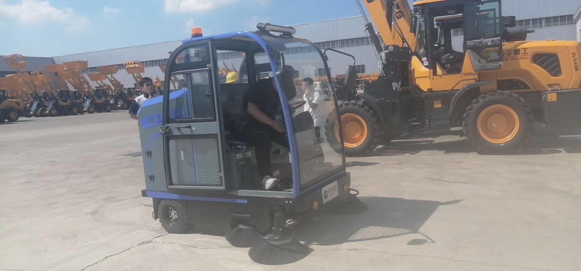 鼎潔盛世銷售人員與工程師送貨上門加培訓(xùn),感謝山宇重工選擇全封閉掃地車,期待更多的園區(qū)停車場(chǎng)用上全封閉掃地車,為園區(qū)提供整潔干凈的生活環(huán)境。