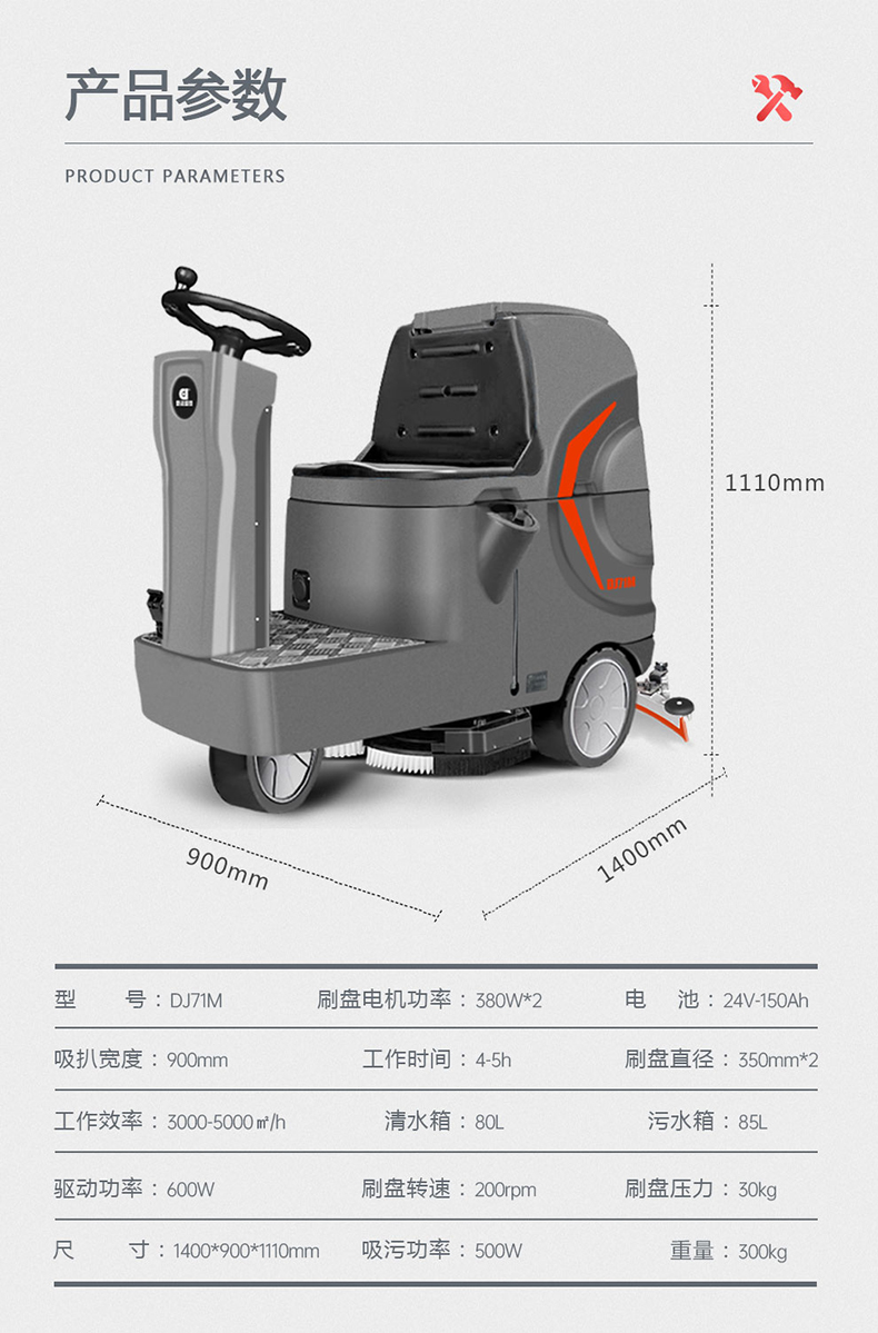 鼎潔盛世駕駛洗地機(jī)雙刷電動(dòng)洗地車DJ71M